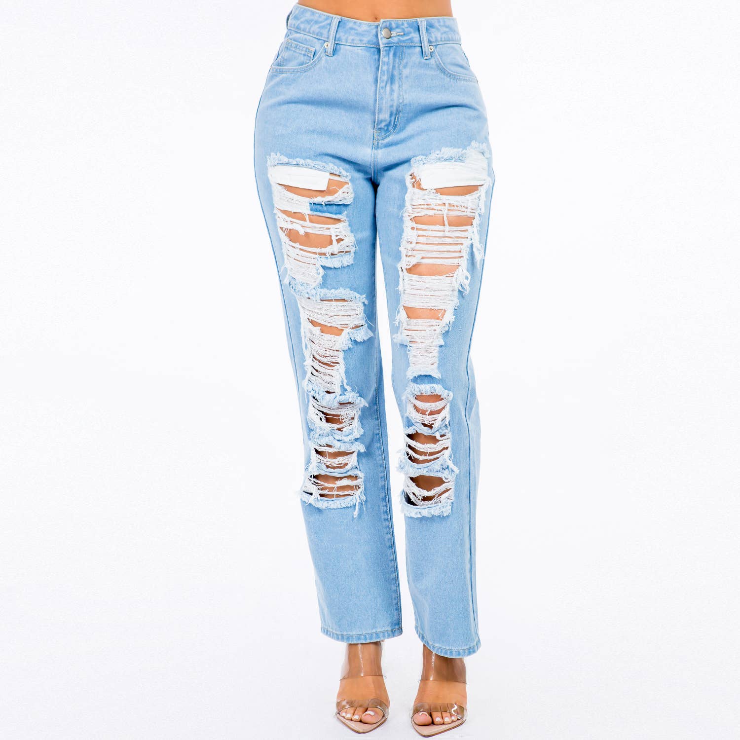 HIGH WAIST DISTRESSED STRAIGHT JEANS-RJH30315